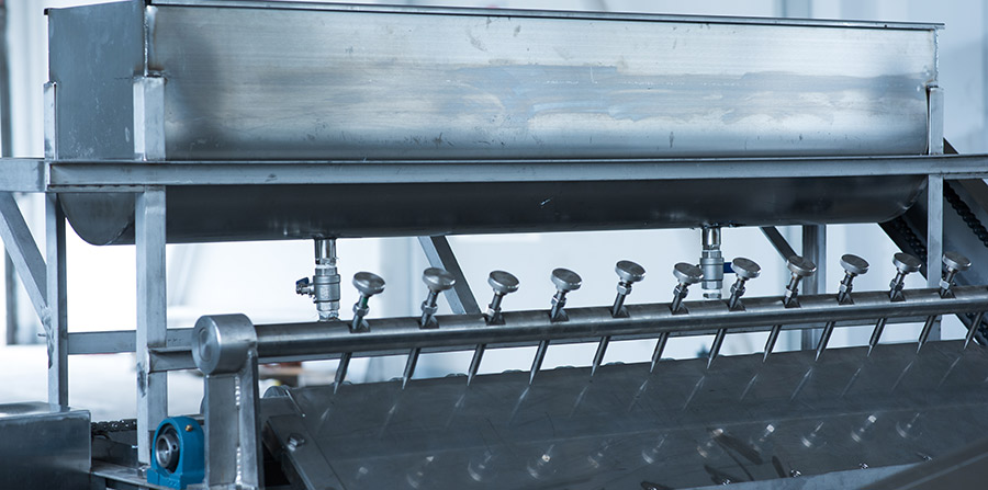 本生產線的調漿罐裝有攪拌裝置,在定量粉體喂料機的配合下將米漿調整到合適的狀態,并防止米漿沉淀。本機的儲漿罐配有液位計和攪拌裝置,保證漿液不發生沉淀,布漿均勻。