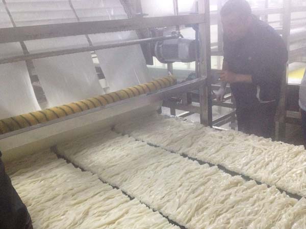 該生產線是以大米為原料做干河粉的設備,我們采用最新技術生產,簡化了傳統工藝過程、縮短了干河粉生產加工時間,從制漿到產品干燥后包裝全部實現機械化和連續化生產,無須人工操作。生產線工藝成熟、設備易學好操作、故障率低、適合規模化生產的需要,生產過程滿足食品衛生要求。