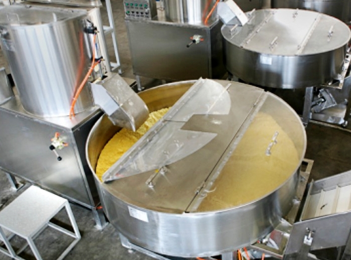 本生產線采用擠壓非膨化技術,通過高壓高溫使雜糧淀粉糊化并形成條狀;本設備適用于多種雜糧谷物,針對不同糧食的特性,只需調整相關的PLC參數,即可實現不同原料雜糧面條的生產。
