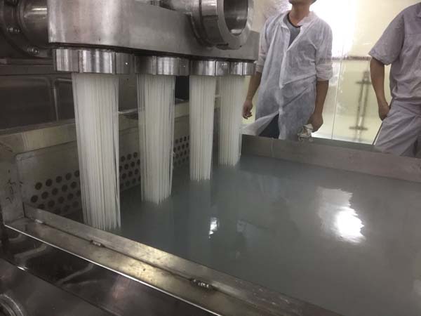 In order to longer fresh rice noodle storing, it will be packaged and sterilized by pasteurization and then steamed and cooled.